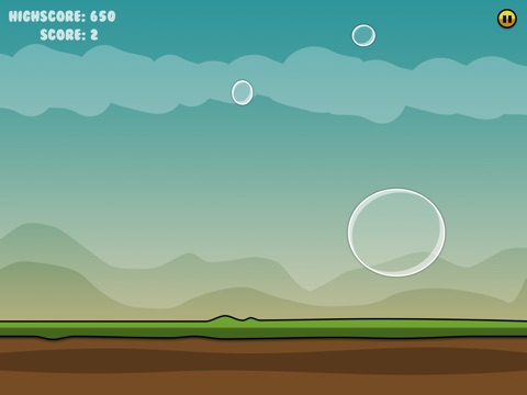 Pop the bubble! Dont let hit the ground, exit from the water or fly away in the space. On touching, bubble pop and split into two, and again until small enough.