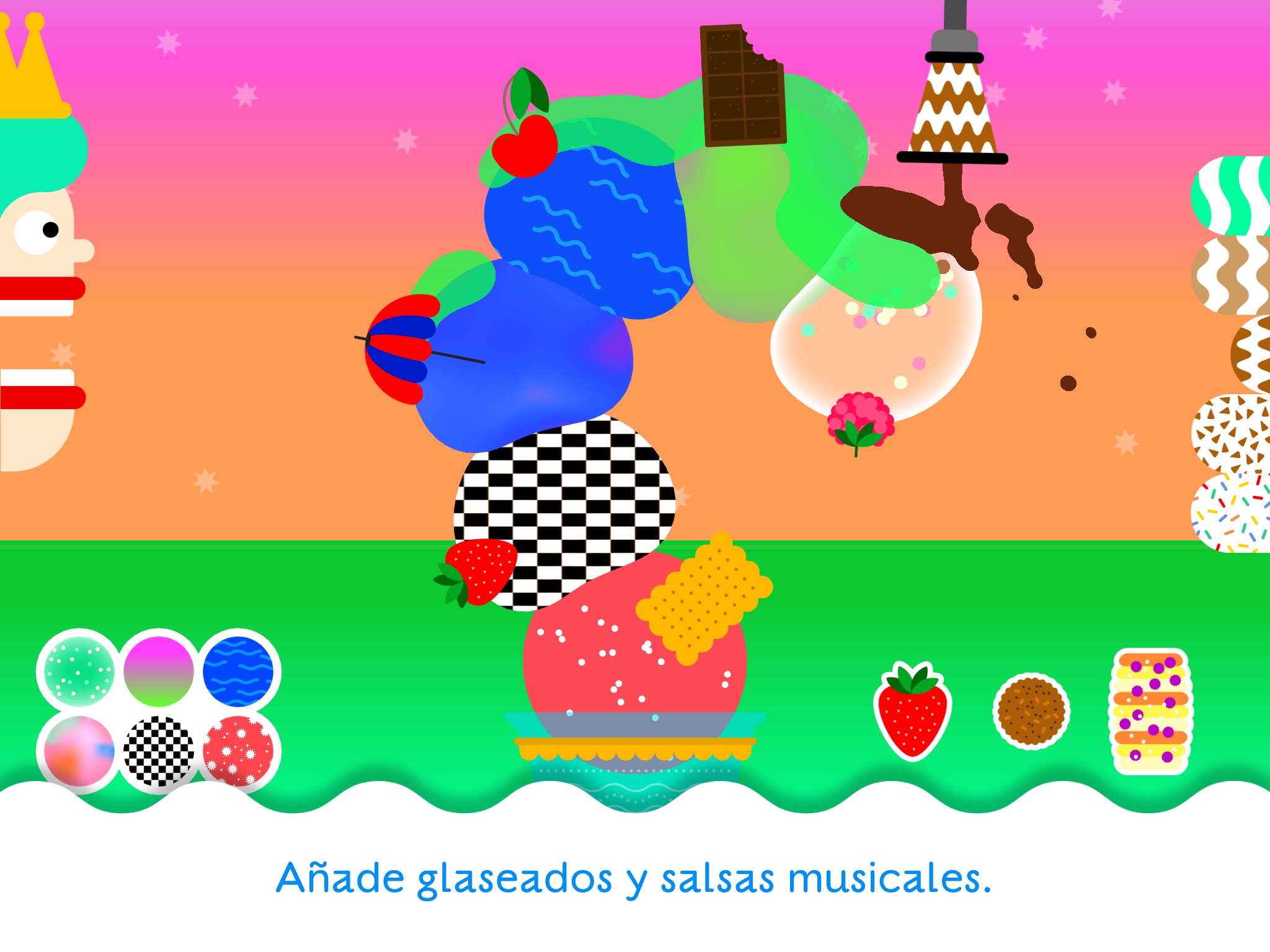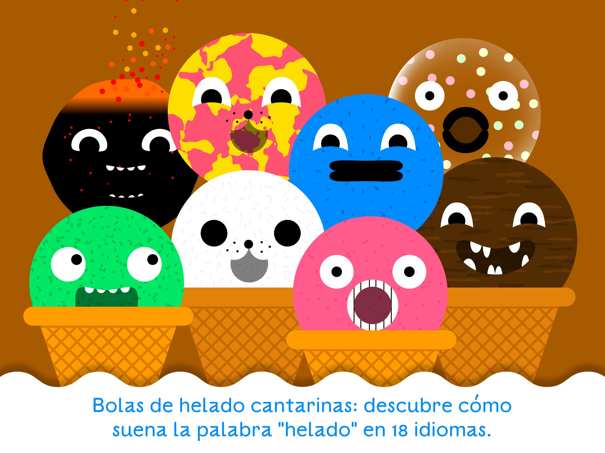Cada bola de sorvete é uma parte da música que toca, e ao colocar todas as bolas vc forma a música. Muito bom para treinar o ouvido musical das crianças. Com a cobertura e os doces vc cria sons. Até eu brinquei com meu filho. Ele relaxa tanto com a música que até dorme.