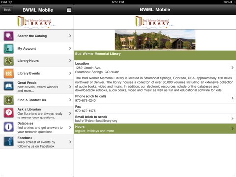 The Bud Werner Memorial Library in your hands! Search for books, DVDs, audiobooks, CDs and more. Place holds, renew items and yes, even pay fines. Keep up with our latest events or do research from your phone by Asking A Librarian or searching a database. Need a book suggestion? Try one of our Great Reads lists that are updated regularly.