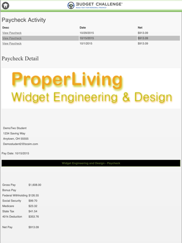 The simulation does not use real money, but is extremely realistic including features such as online bill pay, direct deposit, email bill alerts, 401k paycheck deductions and more. Budget Challenge also includes many of the complicated banking and credit card fees that plague young people in the real world, so students can learn the ropes and make their costly ‘rookie’ mistakes in the safety of the classroom.
