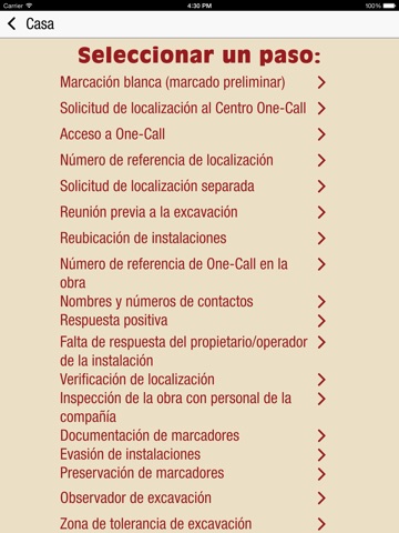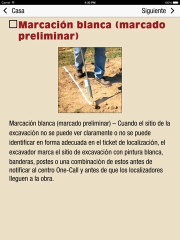 Esta aplicación incluye una lista y breve descripción de las mejores prácticas de excavación que la Alianza de Terrenos en Común (una organización nacional de prevención de daños) identificó en la publicación Mejores Prácticas (versión 11.0). Los excavadores pueden utilizar esta aplicación en la obra para seguir las mejores prácticas reconocidas de la industria y reducir los posibles daños a los servicios subterráneos.