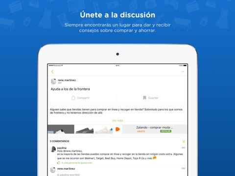 Abre una cuenta en BuenosDeals (gratis, por supuesto) para poder usar las funciones avanzadas pues los miembros dan y piden consejos (reales) sobre ofertas, tiendas, artículos, servicios y mucho más.