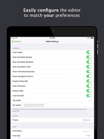 • Customizable font and font sizes