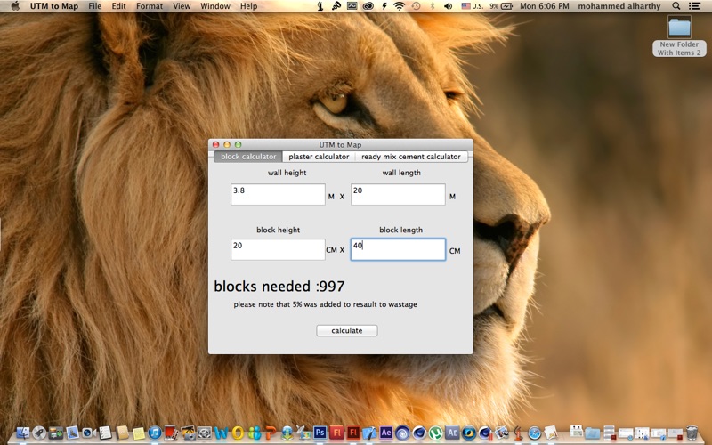 a building assistant that that will tell you blocks needed for building a wall , plaster needed to cover it and the concrete needed to fill an area