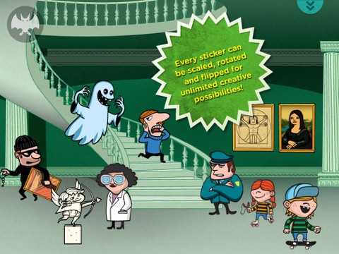 - 100s of full-color stickers, including: paintings, statues, security guards, visitors, rascals, ghosts, monsters and vampires.