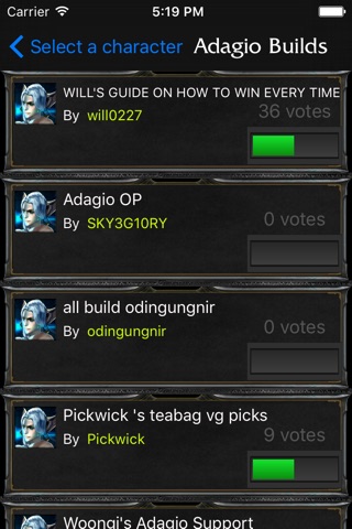 Builds is an amazing app that allows you to check detailed builds for the different heroes of Vainglory.