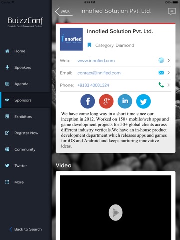 * Bring in additional visibility to the exhibitors and sponsors – allow them to upload pitch videos and catch more eyeballs on mobile