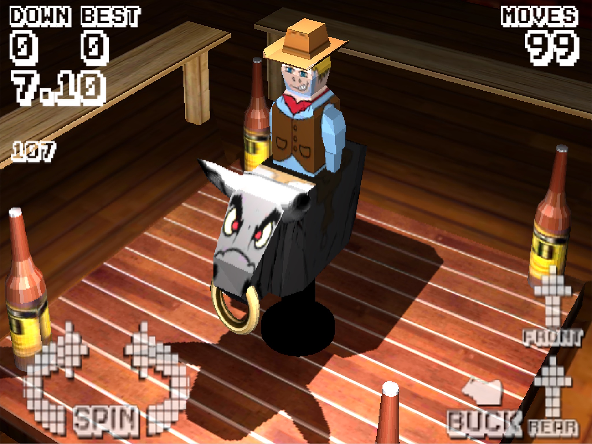 Buck the bull rider into the bottles to get additional moves.