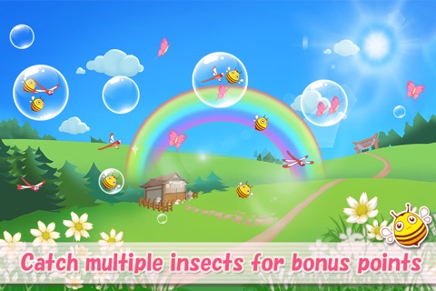 Catch and collect cute bees, dragonflies and butterflies in giant soap bubbles.