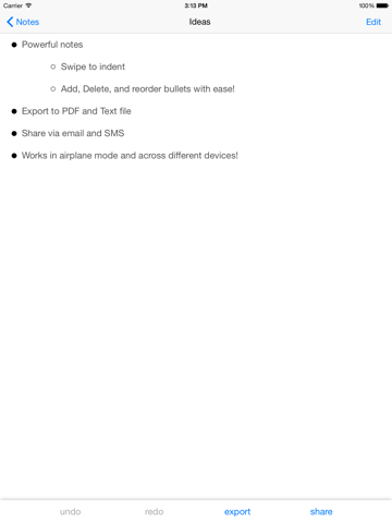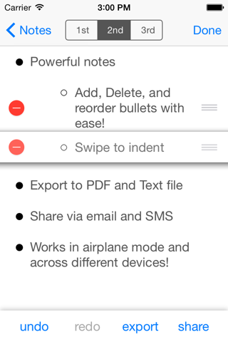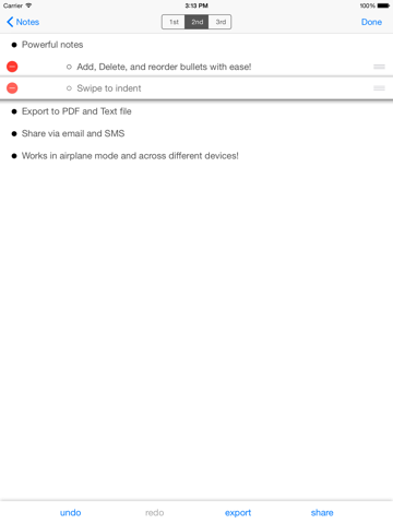 ** Swipe to indent / unindent bullets