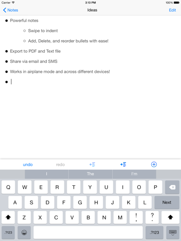 ** Add bullets by hitting next on the keyboard or hitting the plus button