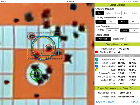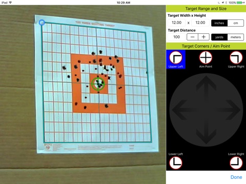 The app provides the ability to see the last shot blink, mark shots, color shots, review shots, save/load sessions, measure groups, overlay grids and play head-to-head target games!