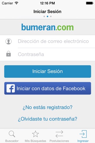 La aplicación solo tiene cargada ofertas en argentina pero promocionan la app en todos los países ejemplo Venezuela y cuando indicas una búsqueda no te acerca ni al área ni puedes indicar apropiadamente en q ubicación buscar boomerang.co.ar debería ser ...