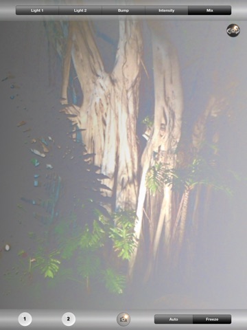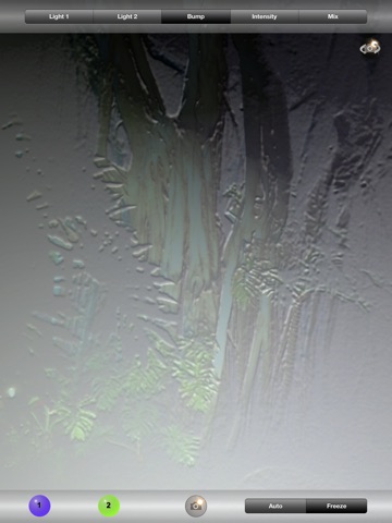 Bump-D-Light is a camera app that uses per-pixel lighting with a bump map. You may freeze the picture and start changing the different options then take the picture when you are ready, or just take the picture. You may customize the color and position of the light. From different hues and gradients of whites the picture can have a tint. The bump map can create an embossed like effect, but it will keep some of the color in the image creating a color emboss. The intensity of the light may also be changed, to get just the right amount of shine.
