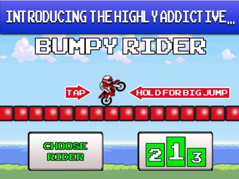 Test your reflexes and reaction time with this fast paced, endless race. Gain points by distance and receive bonuses for lasting longer. Simple controls and easy to play. Bumpy Rider will have your adrenaline pumping and your hear bating out of your chest.