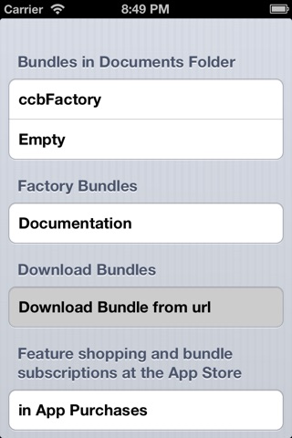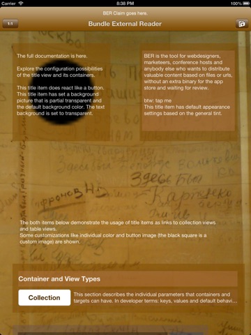 BER uses plists in the Documents Folder to control the appearance of UIViews. Most items are also Responders and push and pop other view controllers. Data in content views is also loaded from plists.