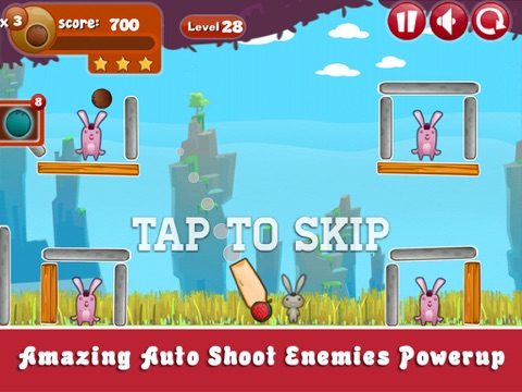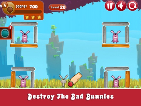 Bunny Battle Royale game is all about aiming and destroying the bunny. Simply, tap the canon and drag anywhere on the dotted line to change the angle of your shot and release the ball to shoot the bunny.