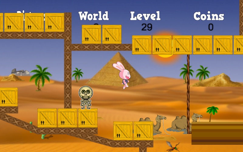 Guide Bunny Bop through the various worlds and levels, Watch out for the enemies that include slime, spiders, skeletons, mummies especially the pesky wasps and mosquitos that can be difficult to avoid.