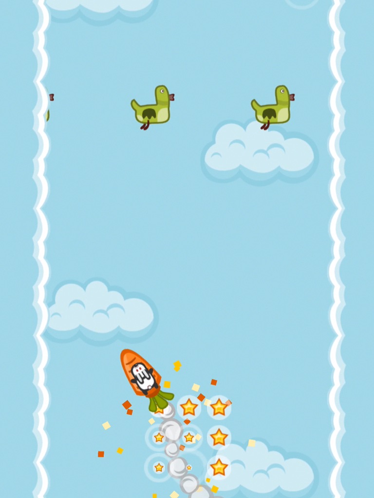 Touch the sides of your screen to control a little creature strapped on a firework and reach the heights no bunny ever dreamed of. Fly up while avoiding rows of ducks, cats, space debris, meteors, alien spaceships, airplane wings, bunnies with balloons, hawks with hunger for bunnies and cloud sharks with jetpacks (thats a thing!).