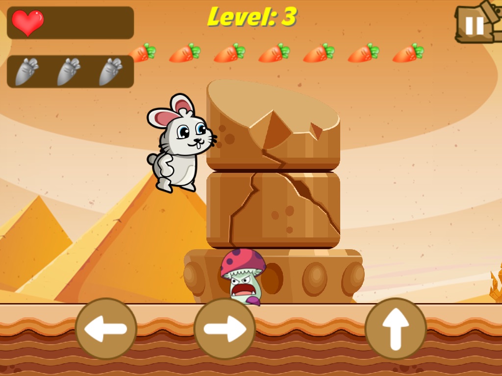Bunny Peter get lost in the desert.Run and collect as much carrots as possible,when you reach specific amounts of carrots, you can get a star as a reward.Help him escape the mysterious desert before the cute bunny becomes a mummy.