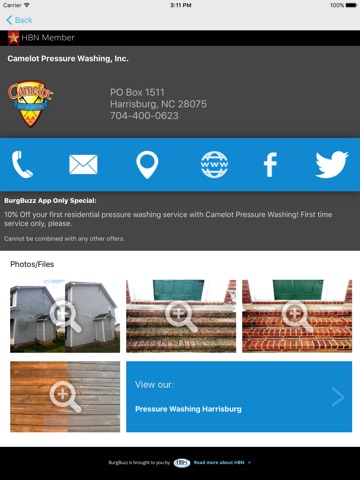 BurgBuzz is the first mobile application for the city of Harrisburg, NC which will let you search for shopping, arts, entertainment, dining, services, and more. All centered around the city of Harrisburg, NC.
