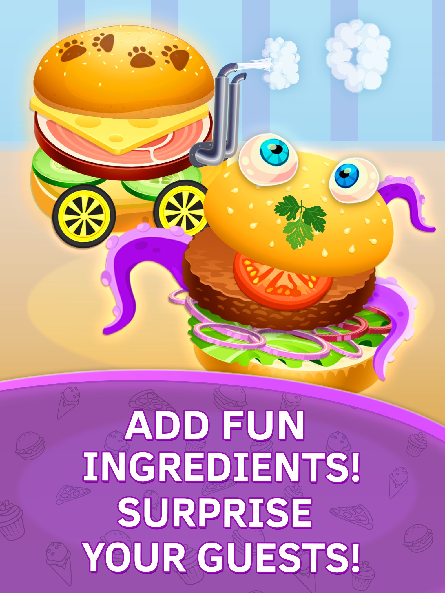 Unleash your imagination! This game turns ordinary cooking into a really fun activity! Stack layer upon layer and build a huge sandwich! Have fun with kitchen games for kids free - experiment with yummy ingredients. Make a veggie sandwich or an insane burger with super extra meat!