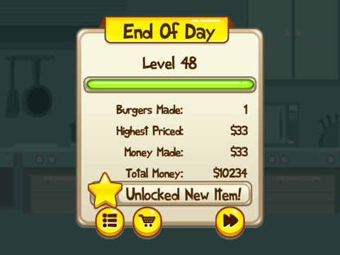 The Burger Shack is a fun and addictive burger game. Start off your burger journey with a hamburger with ketchup. Earn money making as many burgers as you can in your 1 minute business day. Every few business days you are able to purchase unlocked items from your inventory to move along to the next level. You purchase these items with the money you earn making burgers. In your inventory you have: