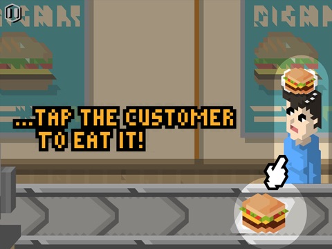 Check what the customers want to eat and tap the customer when the right food is in front of them! Dont eat the wrong food or let perfectly good food pass by - the boss might just throw everyone out like
