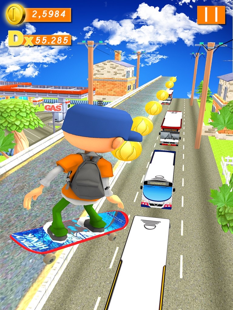 Bus Rush 3D is an amazing running game with bus traffic on road. Check your reflexes to see the buses and also open your ear to hear the sound of the buses to complete your levels. Run along the craziest scenarios in the Bus Rush City and town. Drag to jump or slide and to move left or right. Avoid hitting trucks and buses. Run around different scenarios and gather all the coins you can. Bus Rush is one of the best skate board games. Avoid the accident with the bus driver and collect the jetpack power to safe your journey.