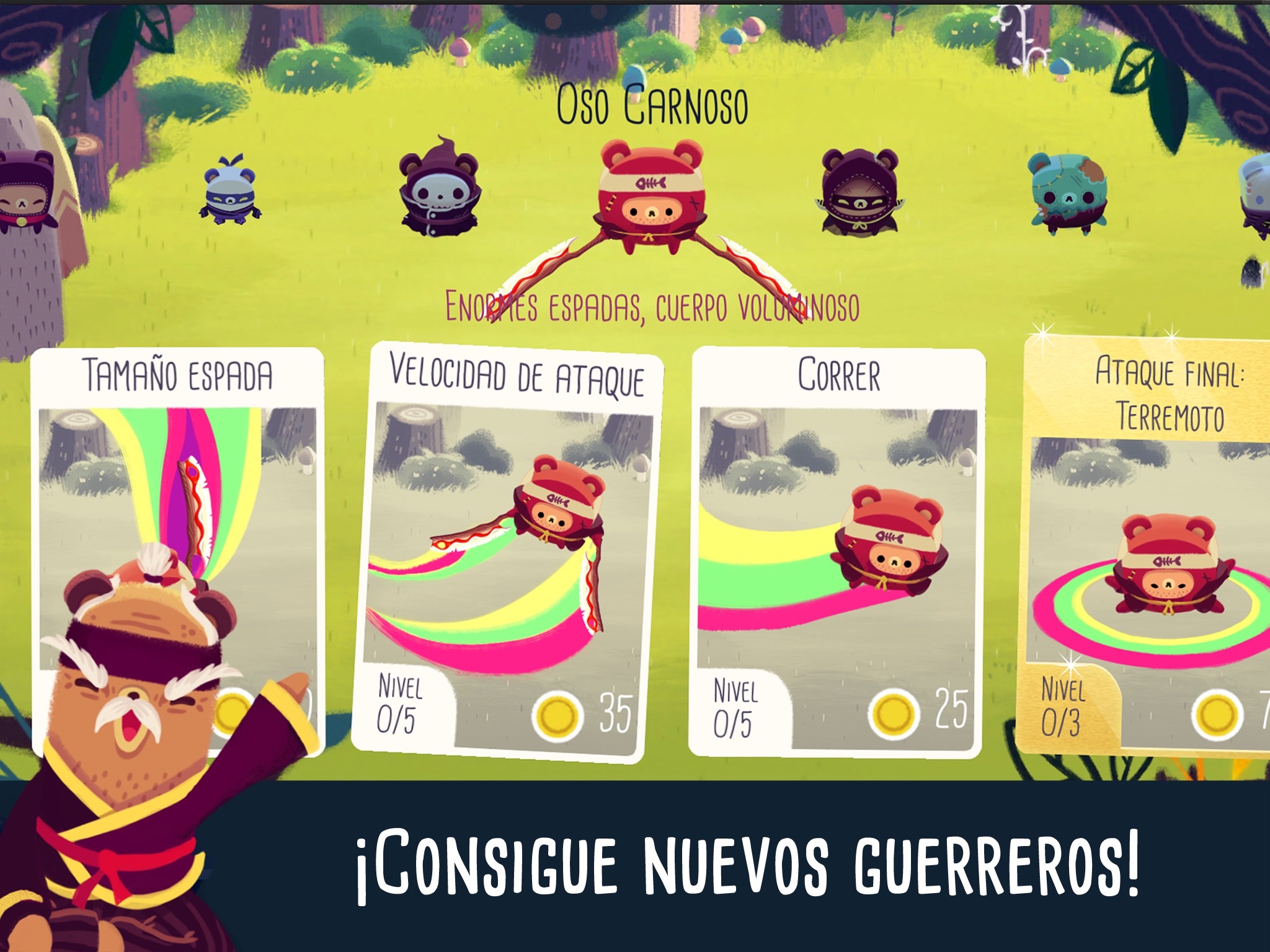 As you play Bushido Bear, youll unlock new ninja characters and upgrade your existing characters, which will change the way you play the game. Lone Cub is slow but can slip past enemies thanks to his tiny size. Smoky Bear can teleport anywhere instantly. Neo Bear slows down time as he plans his attacks. Youll want to collect and experience all the bears!