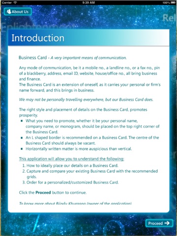 This application will give us an understanding of how an ideal Business Card should be and how the elements on it are to be arranged.