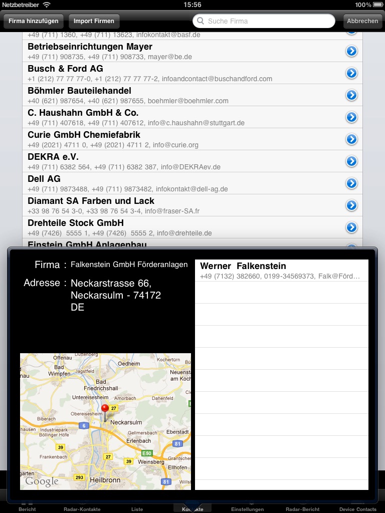 Companies and contacts simultaneously with their own devices in a common contact contacts app!