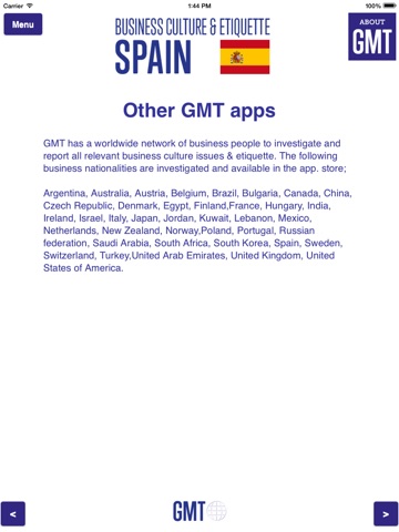 Knowing and respecting cultural backgrounds of your counterpart(s) in Spain is essential to do business successfully. This App delivers all relevant information with respect society & culture, business culture & behavior, relationships & communication, meetings, negotiating, appearance matter, gift giving etiquette, habits concerning meals & drinks. This App is also valuable to prepare your internship to Spain.