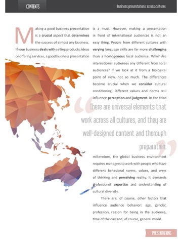 By combining professional and personal development articles with lessons on Business English Magazine offers a unique opportunity to learn English while acquiring knowledge and fostering skills that can help you do better at your job. The magazine is interactive, giving you the ability to tap unfamiliar terms and words and discover their meanings. Videos take you deeper into the key concepts of the articles, and every article is written to be as entertaining and engaging as it is informative.