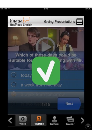 Video language course "Business English" as a mobile app for iPhone: Practice your Business English for your everyday working life with authentic conversations and interactive exercises!