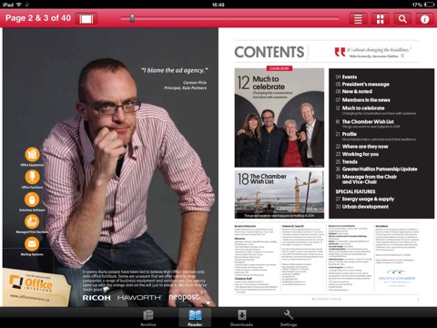 The Business Voice app is digital replication of the magazine that offers more interactive features such as links to outside websites and Youtube videos.