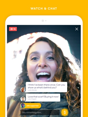 Busker makes live video fun. You can chat with the host and if you enjoy their broadcast you can like, support or buy.