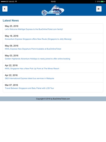 BusOnlineTicket mobile app is now available at your fingertips. You can just install and book your tickets by choosing your date and destination, select your preferred seats and make your payment in just a few clicks. Besides buses and ferries, you can also get your KLIA Express & KTM ticket on our app.