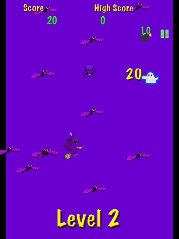 Touch and swipe the screen to float the ghost to collect as many bats as possible. Float your way around lots of scary obstacles and through many levels using power-ups (such as black bombs) to help get high scores and win the game!