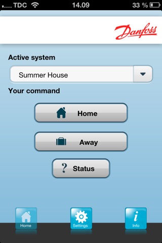 The Danfoss ButlerApp makes it easy to remotely turn the Away function ON/OFF in a Danfoss LinkTM system. To use this App a Danfoss Mobile Phone Butler must be connected to the Danfoss LinkTM system.