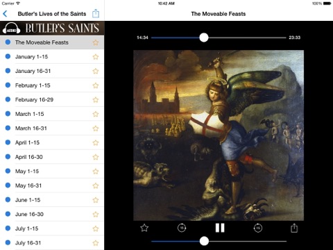 An audiobook of the Benziger Brothers 1878 edition of the famous Alban Butlers “Lives of the Saints” that contains short biographies of the saint(s) for each day, followed by a reflection for each entry. Will work on your iPad as well as your iPhone (see instructions below).