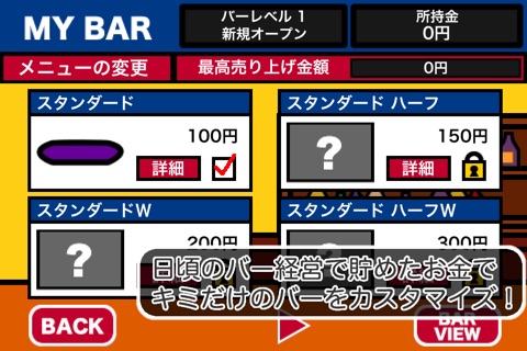 また、売上金を貯めて自分のバーをカスタマイズすることもできます。