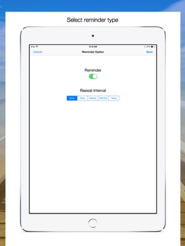 + One time or repeating reminders (daily, weekly, monthly, yearly)
