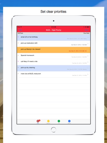 BUZL (Busy List) is a quick priority list to simplify the way you manage your tasks, and focus on whats important every day. View your priorities in one glance, reorder, and add reminders as needed. BUZL it and get it done. (Get BUZL or BUZL Watch for an ad free version)