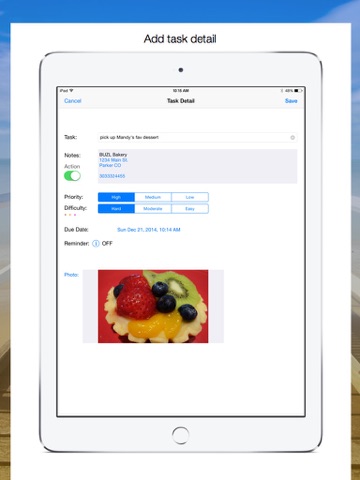 + Delete a task from your reminder notification (iOS 8 and above)