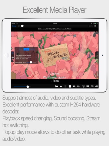 BUZZ Player is a multimedia player supporting many audio and video codecs and file formats, multiple photo file formats and various streaming protocols. So, there is no worry about the file formats or restricted memory of the iPhone, iPod Touch, user just concentrate on enjoying their favorite high quality audios, videos and photos in a smooth way.