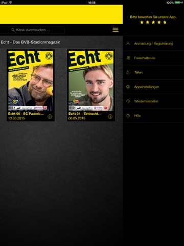 Willkommen im digitalen Kiosk von Borussia Dortmund. Ab sofort erhalten Sie über diese App die schwarzgelben Magazine und Veröffentlichungen des BVB.