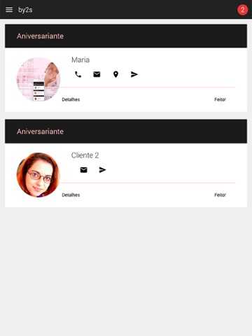 by2s é um App desenvolvido de maneira específica para consultoras de beleza independentes com o objetivo de facilitar o pós-vendas do seu negócio. Focamos no fortalecimento da estratégia de negócio com foco no cliente, objetivando suas necessidades e a venda consultiva de produtos no momento certo para o cliente certo. Para isso destacamos a importância da disponibilização no by2s do conceito de CRM intervalado, conceito 2+2+2, simples, fácil e direto ao objetivo final da consultora. Teste gratuitamente por 5 dias!