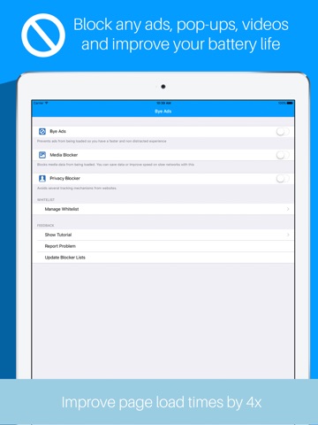 ByeAds is a blocker content for iPhone and iPad designed to offer a great experience in your web browser.