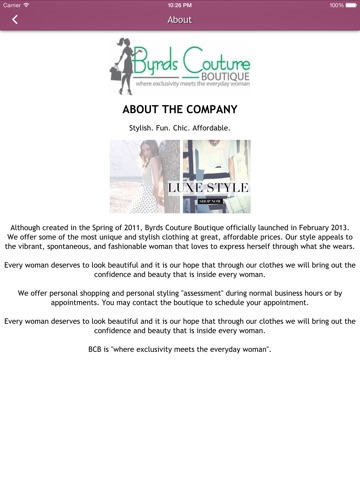 Although created in the Spring of 2011, Byrds Couture Boutique officially launched in February 2013. We offer some of the most unique and stylish clothing at great, affordable prices. Our style appeals to the vibrant, spontaneous, and fashionable woman that loves to express herself through what she wears.